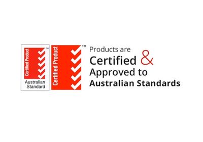 Toughened glass panels are stamped with a small logo confirming the Australian standard.